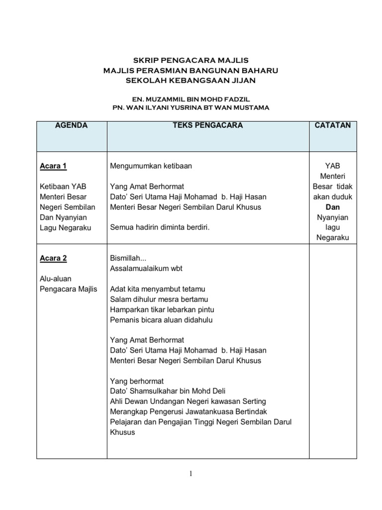 Untuk memastikan perjalanan majlis berjalan dengan lancar, mohon para hadirin sekalian dapat mematikan telefon bimbit atau menukarkannya dalam mod. Mar 30, 2013 · skrip majlis makan malam. Genting international convention centre masa : Majlis pelancaran gig tecknology sdn bhd 2015 tarikh : Sesi bergambar di dinding bergambar 2. Saya akram noor, selaku pengacara majlis anda pada malam ini. See full list on itubabam.blogspot.com Teks ucapan pengacara majlis makan malam hari keluarga 2017 age. Sabtu, 5 sept 2015 tempat : Selamat datang sekali lagi, diucapkan ke majlis malam gala, qudoss realty 2018. Mengumumkan ketibaan timbalan menteri pelajaran 1, kementerian pelajaran malaysia, yb. More images for skrip pengacara majlis makan malam » Nov 08, 2016 · skrip.